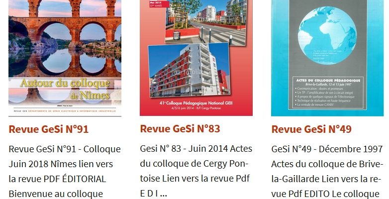 Les archives de la revue des départements GEII accessible sur le nouveaux site web de l'association GESI